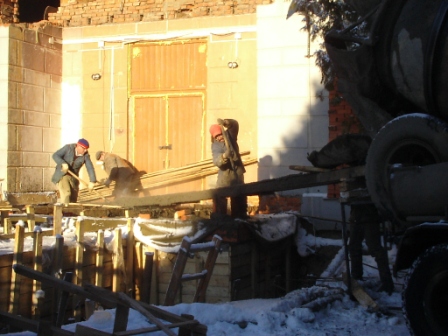 ФОТОГАЛЕРЕЯ Храм (декабрь 2005). Заливаем бетоном перекрытие подвала храма Нажмите на фотографию, чтобы посмотреть ее в увеличенном виде.